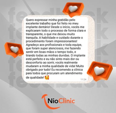 Somos uma rede de clínicas presente em Minas Gerais e São Paulo. Com mais de 12.000 pacientes atendidos e milhares de implantes instalados, na NioClinic oferecemos tratamentos odontológicos completos, desde implantes e próteses até tratamentos com alinhadores e aparelhos.